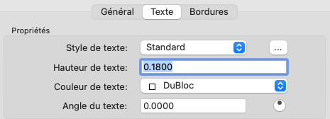 Définit l'angle du texte. L'angle du texte par défaut est de 0 degré. Vous pouvez entrer un angle compris entre -359 et +359 degrés.