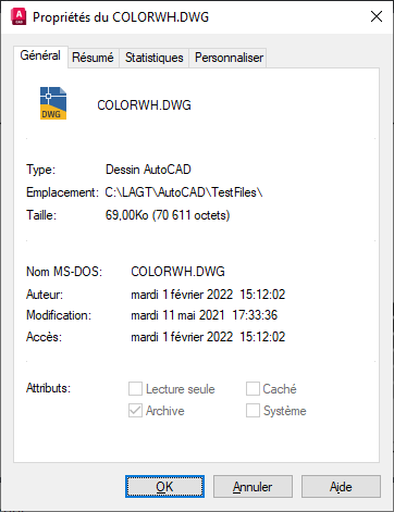 Affiche des informations en lecture seule fournies par le système d'exploitation concernant le fichier de dessin.