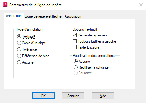 Définit les options de réutilisation d'une annotation de ligne de repère.