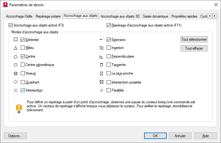 Repérage d'accrochage aux objets activé
