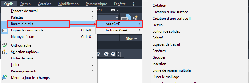 Pour afficher une barre d'outils