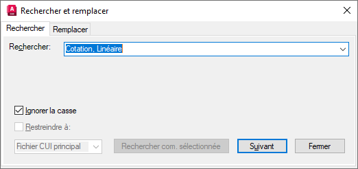 Boîte de dialogue Rechercher et remplacer (CUI)