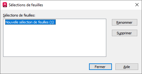 Renomme ou supprime des sélections de feuilles enregistrées.