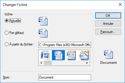 Affiche la boîte de dialogue Parcourir (boîte de dialogue standard de sélection de fichiers), qui permet de sélectionner une icône à partir d'un fichier.