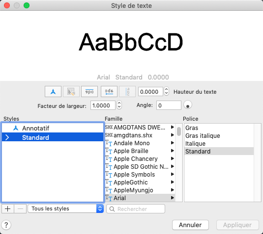 Affiche la liste des styles présents dans le dessin.