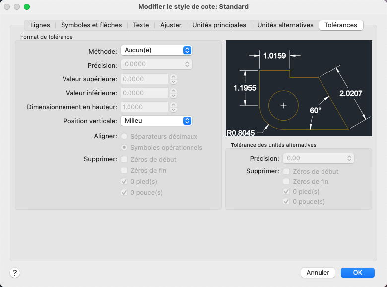 Spécifie l'affichage et le format des tolérances du texte de cote.