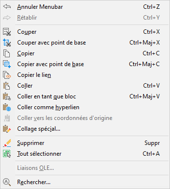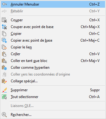 L'exemple suivant montre l'élément de menu Liaisons OLE dans le menu Edition marqué d'une coche et l'image de l'élément de menu Copier le lien est mise en surbrillance avec une bordure.