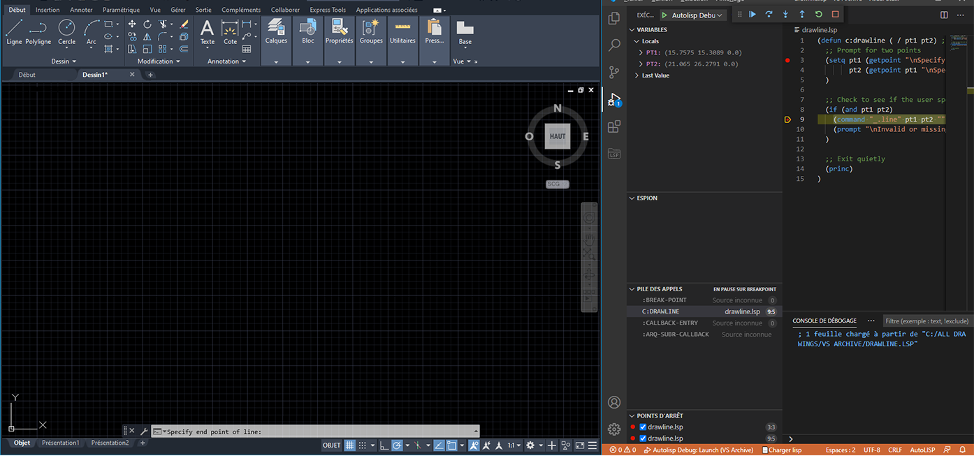 Une nouvelle extension AutoLISP a été publiée à des fins d'utilisation avec VS Code. Elle vous permet de modifier et de déboguer des fichiers source AutoLISP (LSP) avec AutoCAD.