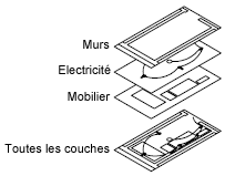 Les calques sont utilisés pour regrouper par fonction les informations d'un dessin et pour appliquer des normes de type de ligne, de couleur, etc.