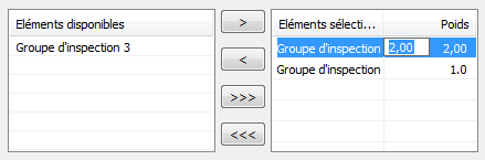 pour déplacer le groupe sélectionné de la liste Eléments disponibles vers la liste Eléments sélectionnés.