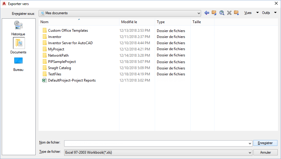 Par défaut, les rapports sont exportés dans le dossier contenant vos documents.
