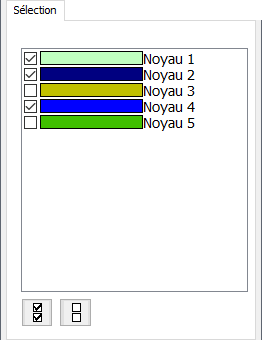 Une fois que l’onglet Sélection est sélectionné sur la boîte de dialogue Diagrammes pour les noyaux, les éléments suivants s’affichent :