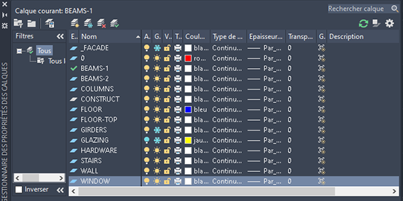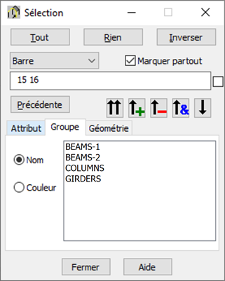 Lorsque vous importez des fichiers DXF ou DWG avec des éléments affectés à des calques, des groupes sont créés dans le modèle Robot Structural Analysis pour chaque calque. Les barres sont automatiquement affectées aux groupes en fonction de l’affectation des calques.