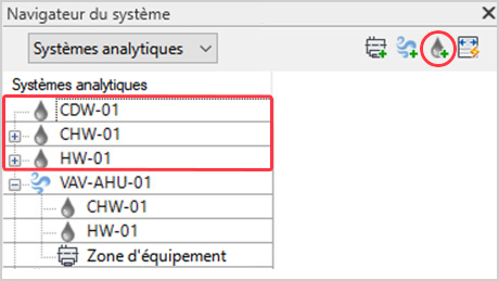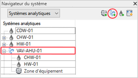 Utilisez les outils du navigateur du système pour ajouter des équipements de zone, des systèmes d'aération et des boucles d'eau.