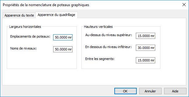Vous pouvez régler la mise en forme du quadrillage de la nomenclature graphique de poteaux.