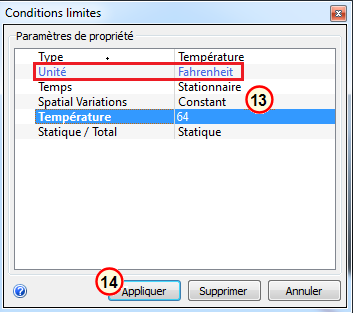 13. Vérifiez que le champ Unités contient la valeur Fahrenheit. Dans la ligne Température, saisissez 64.
