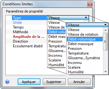 6. Dans la ligne Type, sélectionnez Débit volumique.
