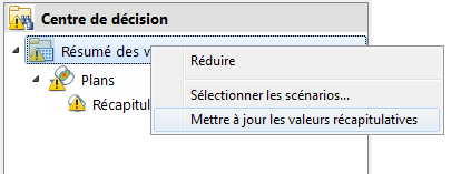 Dans le centre de décision, cliquez sur Résumé des valeurs avec le bouton droit de la souris, puis cliquez sur Mettre à jour les valeurs récapitulatives.