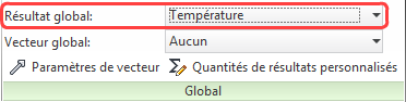 1. Remplacez le résultat affiché par Température en sélectionnant Température dans le menu Résultats globaux du groupe de fonctions contextuel Global :