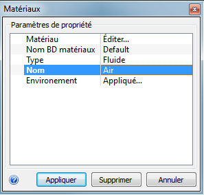 Sélectionnez Air dans la liste Nom et cliquez sur Appliquer.