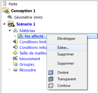 Dans la barre Etude de conception, développez la branche Matériaux.