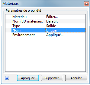 Dans la boîte de dialogue d'édition rapide Matériaux, Type = Solide.