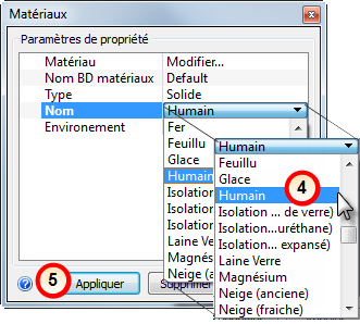Dans cette étape, nous allons affecter un matériau simulant les propriétés thermophysiques du corps humain. La base de données de matériaux installée par défaut ne contient pas un matériau "Corps humain", de sorte que vous devez utiliser Silicon à la place. Une approche plus sévère consiste à créer un matériau avec les propriétés d'un corps humain et de l'ajouter à une base de données de matériaux personnalisée.