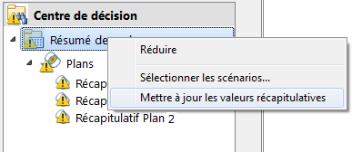 Dans le centre de décision, cliquez sur Résumé des valeurs avec le bouton droit de la souris, puis cliquez sur Mettre à jour les valeurs récapitulatives.