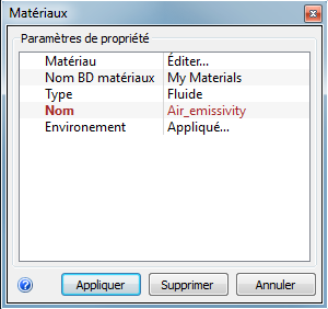 Affectation du matériau Air à émissivité non nulle