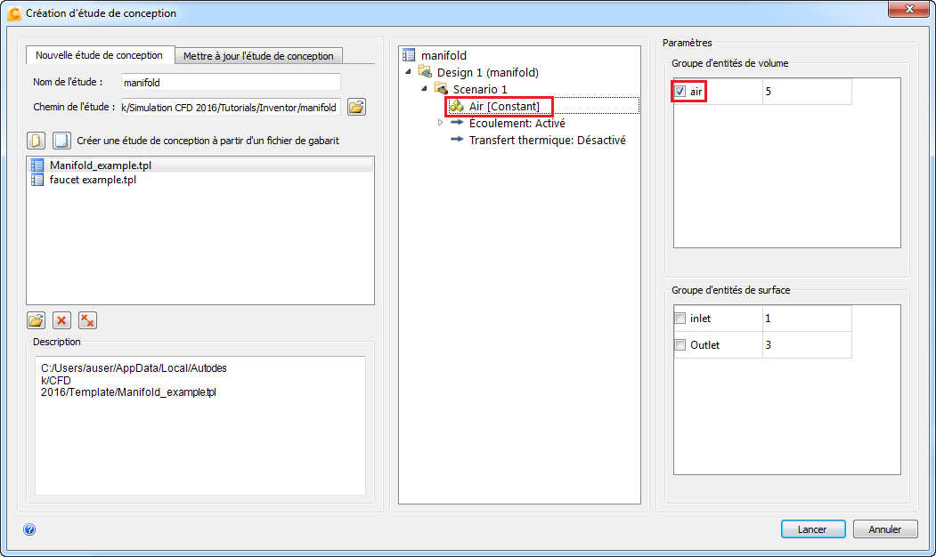 Cliquez sur le matériau Air et cochez le groupe d'entités de volume air.