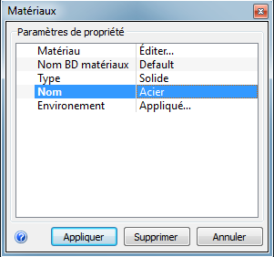 Dans la boîte de dialogue d'édition rapide Matériaux, Type = Solide.