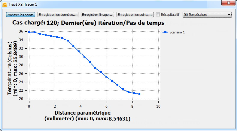 Un grand gradient de température peut être très déplaisant pour l’utilisateur et entraîner des brûlures causées par une eau extrêmement chaude. Dans cette étape, nous allons créer un tracé XY de la température sur la sortie. Cette procédure propose une méthode graphique très claire pour évaluer la variation de la température de sortie.