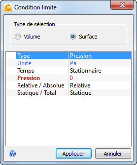 Pour créer la condition limite de pression de sortie :