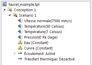 Le modèle contient une condition limite de vitesse, deux de température et une de pression.