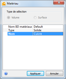 Dans la boîte de dialogue d'édition rapide Matériaux, Type = Solide.