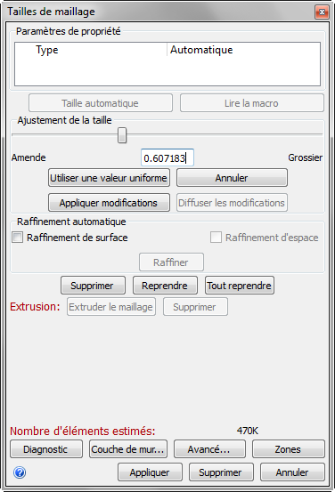 Appliquez la Définition automatique de la taille de maillage à l'aide de l'UNE des méthodes suivantes :