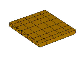 A pipe with extruded mesh contacting a tet-meshed block. The element faces on the circular end of the pipe that contacts the block are extruded down the length of the pipe.
