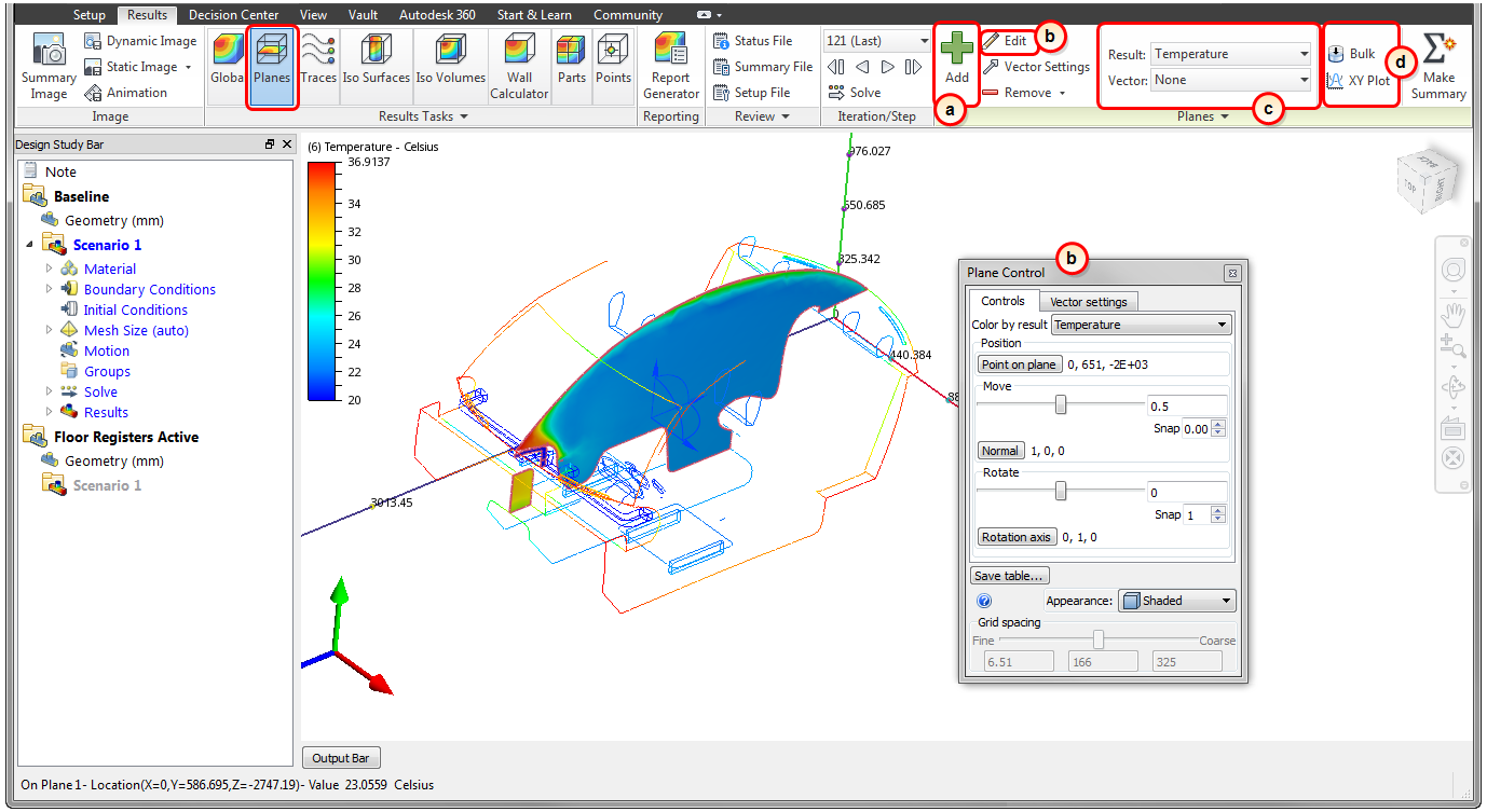 b. To change the displayed result, right click on the plane, and select from the Result or Vector menus.