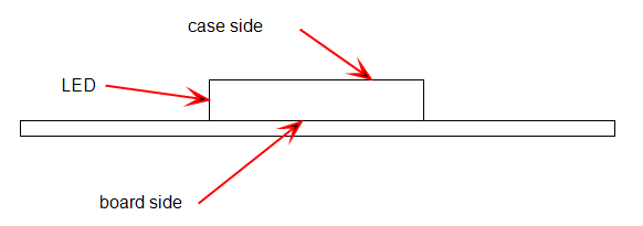 The side of the component touching the PCB material is the board side, and the board node is at the center of the board surface of the component. The opposite side is the case side.
