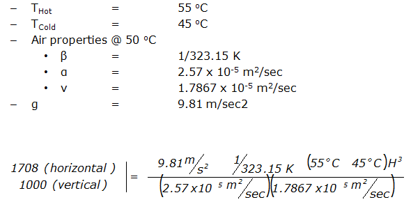 The Rayleigh number describes the transition point. Qualitatively, the Rayleigh number is the ratio between buoyant forces and viscous forces. The buoyant forces cause air motion; the viscous forces oppose it. The Rayleigh number is computed from: