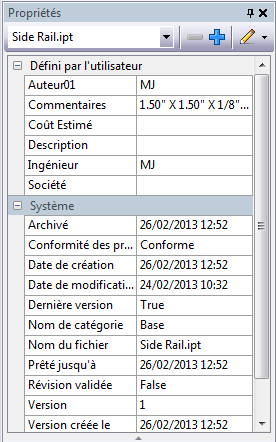 Les propriétés sont séparées selon qu'elles sont définies par l'utilisateur ou par le système. Développez ou réduisez chaque groupe pour vérifier les propriétés de ces définitions.