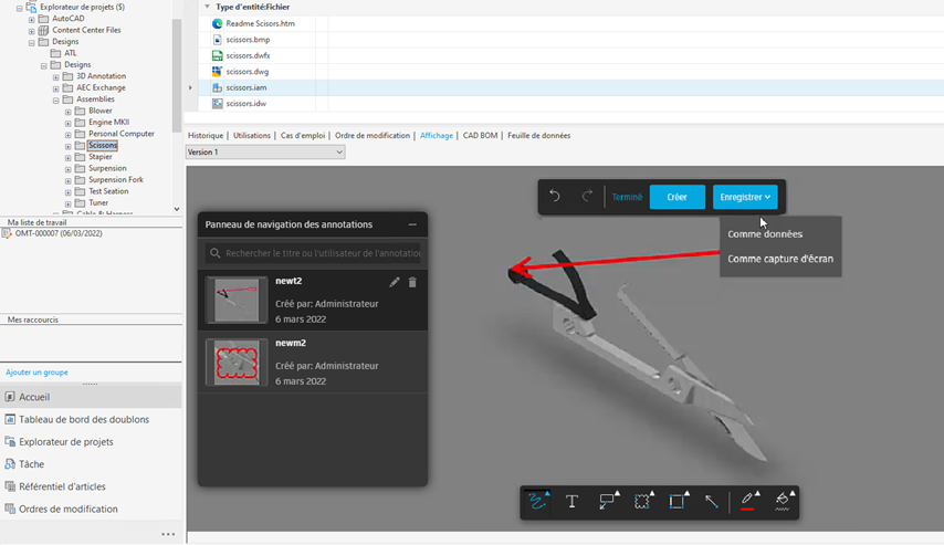 Vous pouvez afficher les notes de révision d’un OMT dans la visionneuse Autodesk, les modifier et les enregistrer sous forme de données dans le coffre-fort.