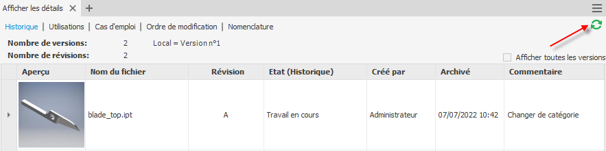 Le bouton Actualiser a été ajouté au volet Afficher les détails d’Inventor/AutoCAD pour actualiser le contenu.