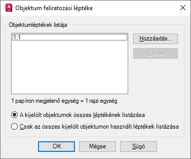 Azt adja meg, hogy a kijelölt objektumok által támogatott összes, az Objektumléptékek listáján szereplő léptéket ki kell listázni.