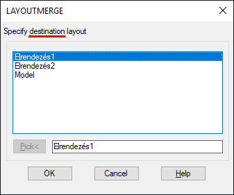 Célelrendezés megadása vagy [?] <Modell>: Adja meg egy meglévő elrendezés nevét, vagy adjon meg egy új nevet egy új elrendezés létrehozásához
