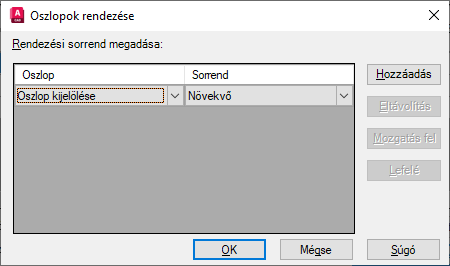 Az oszlopok rendezési sorrendjét adja meg. Az Oszlop rész az Adatok finomítása lapról származó oszlopneveket tartalmaz.