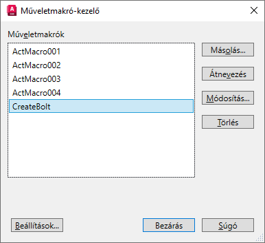 A Műveletmakró-kezelőben megjelennek a rögzített műveletmakró-fájlok (ACTM-fájlok).