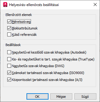 Speciális szövegopciókat ad meg, amelyeket a program a rajzban ellenőrizni fog.