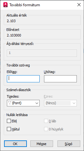 A bevezető és záró nullák letiltását, valamint a nulla értékű láb és hüvelyk megjelenítését szabályozza.
