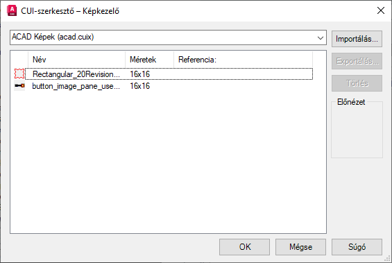 A parancsok egyéni képei importálhatók és exportálhatók.